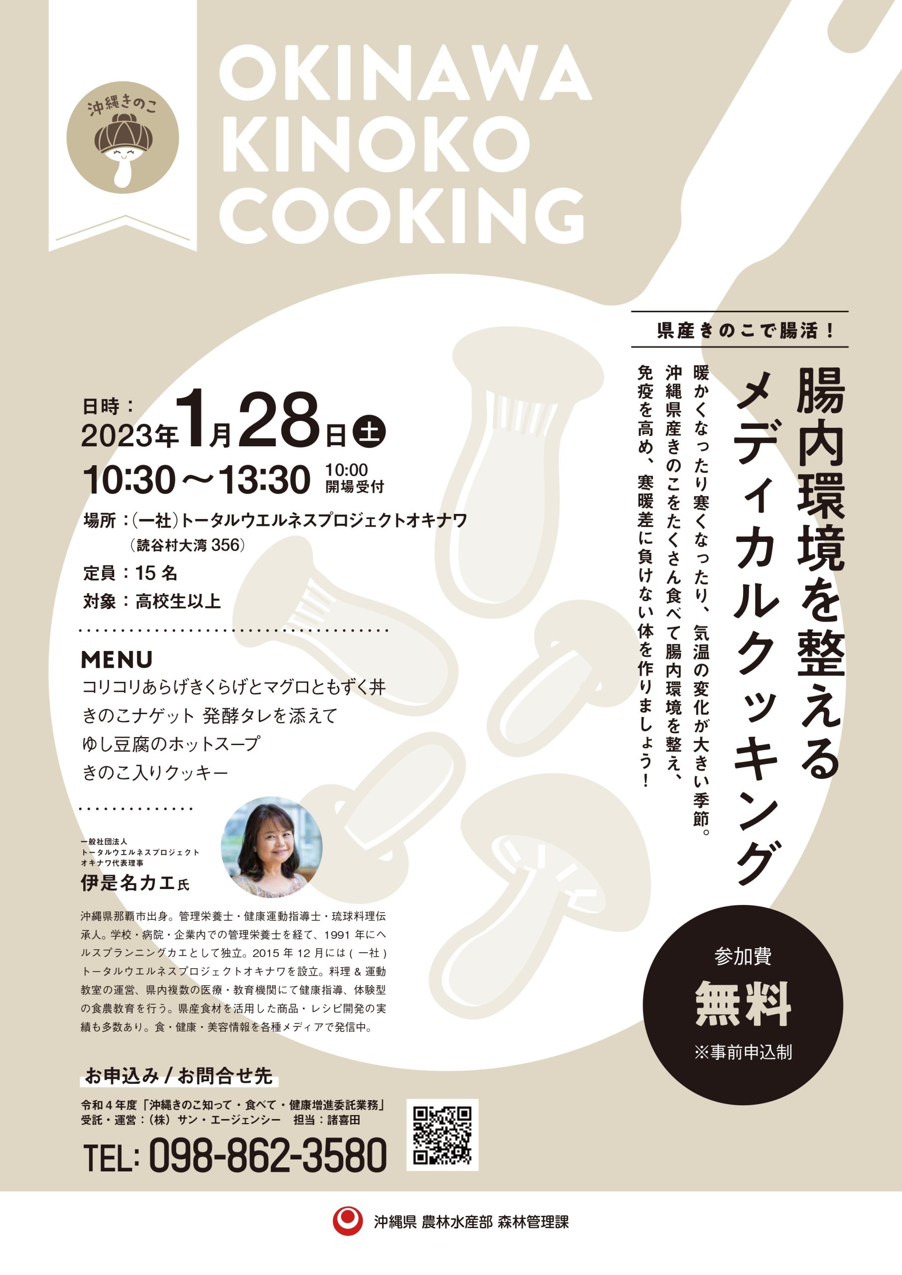 【※受付終了】1/28(土): 沖縄県産きのこ×料理教室開催のお知らせ-vol.2-