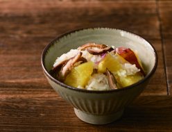 ⑤熱したフライパンにサラダオイルを引き、①を炒めてコンソメで味を調える。