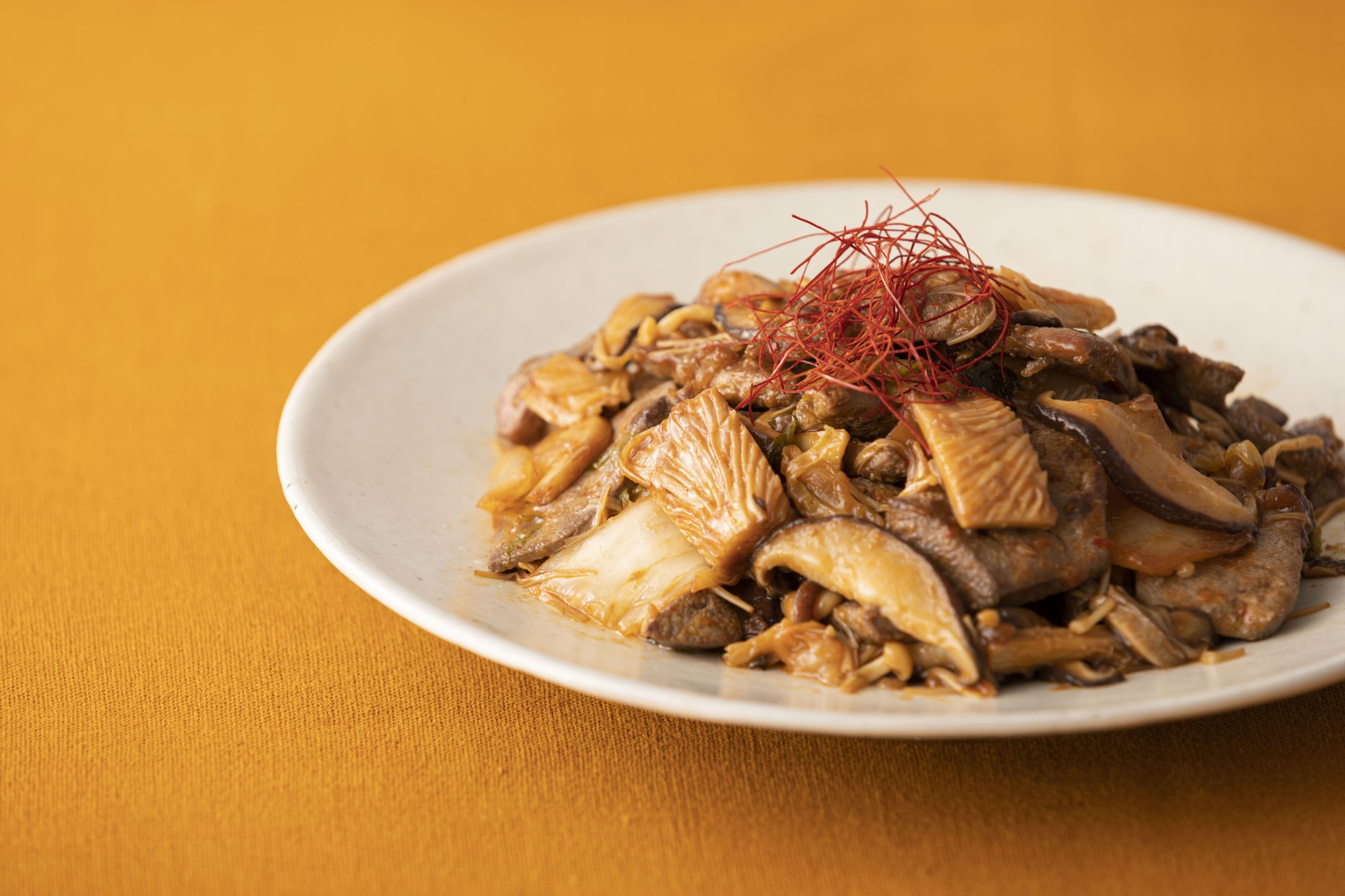 ⑦きのこがしんなりしたら(B)を加え、全体に絡めて完成