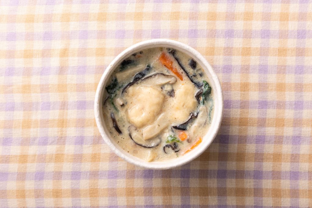 ④鍋に水と豆乳を入れて沸かし、②と③を加えて中火で約5分煮込む。