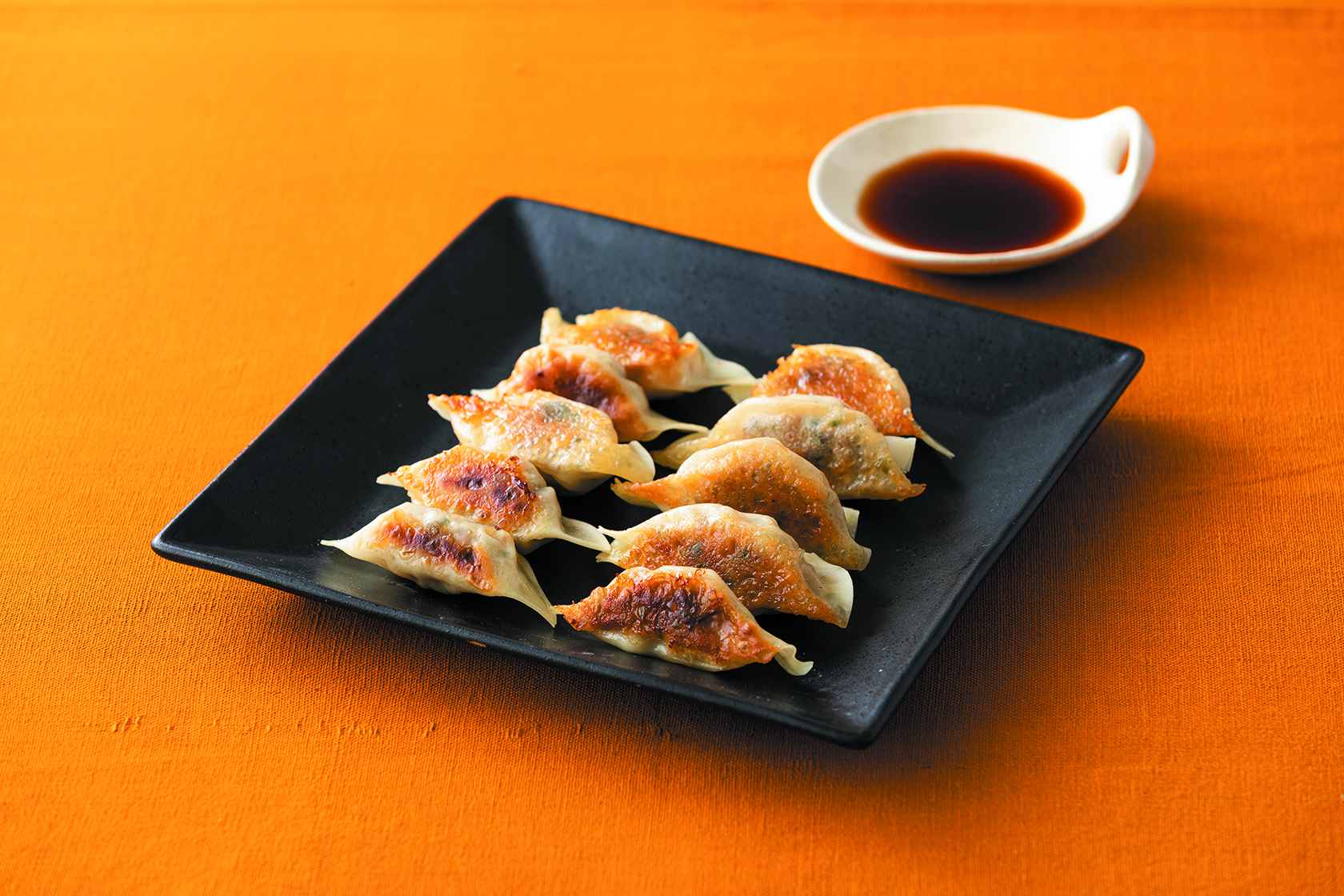 ③餃子の皮に②を乗せ、皮の周囲に水をつけてひだを寄せながら包む。