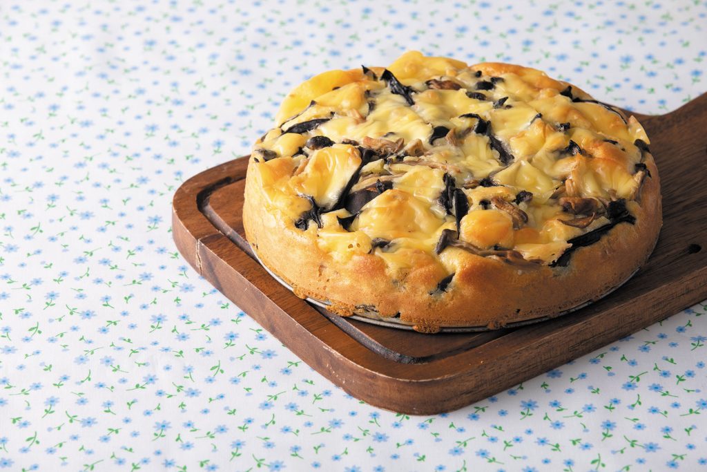 ⑥残りのきのことプロセスチーズを均等に並べ、オーブンで30分ほど焼く。