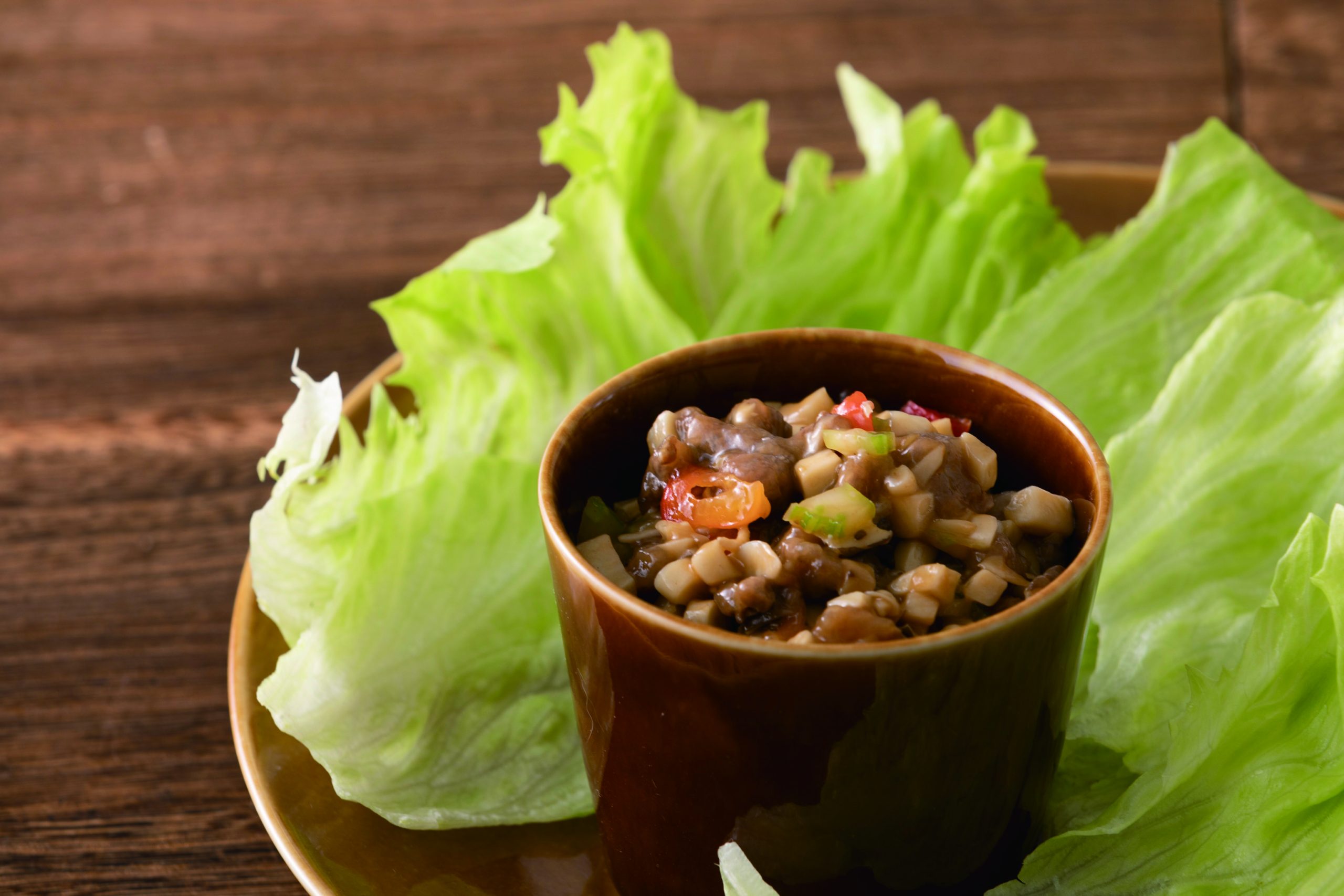 ⑤4にAを入れて混ぜ合わせる。器に盛り付けたら完成♪食べる時はレタスを巻く。